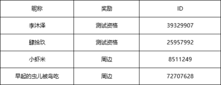 各位创造师好呀,祝贺本次“最让你感觉意外的宝箱位置是哪里”获得圆满的成功,大家对于《神角技巧》的支持,是我们前进的动力!经过艾丽西亚小姐姐仔细确定和核对名单,最终获奖名单出炉了,接下来就由艾丽西亚小姐姐来为大家公布吧~(恭喜创造师们鸭~撒花~鼓掌~祝贺~)再次恭喜以上获奖的创造师们,请以上创造师添加客服QQ:864981448,提供个人中心界面截图,领取奖品鸭~(兑奖时间2021年3月13日截