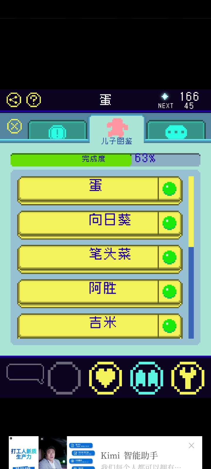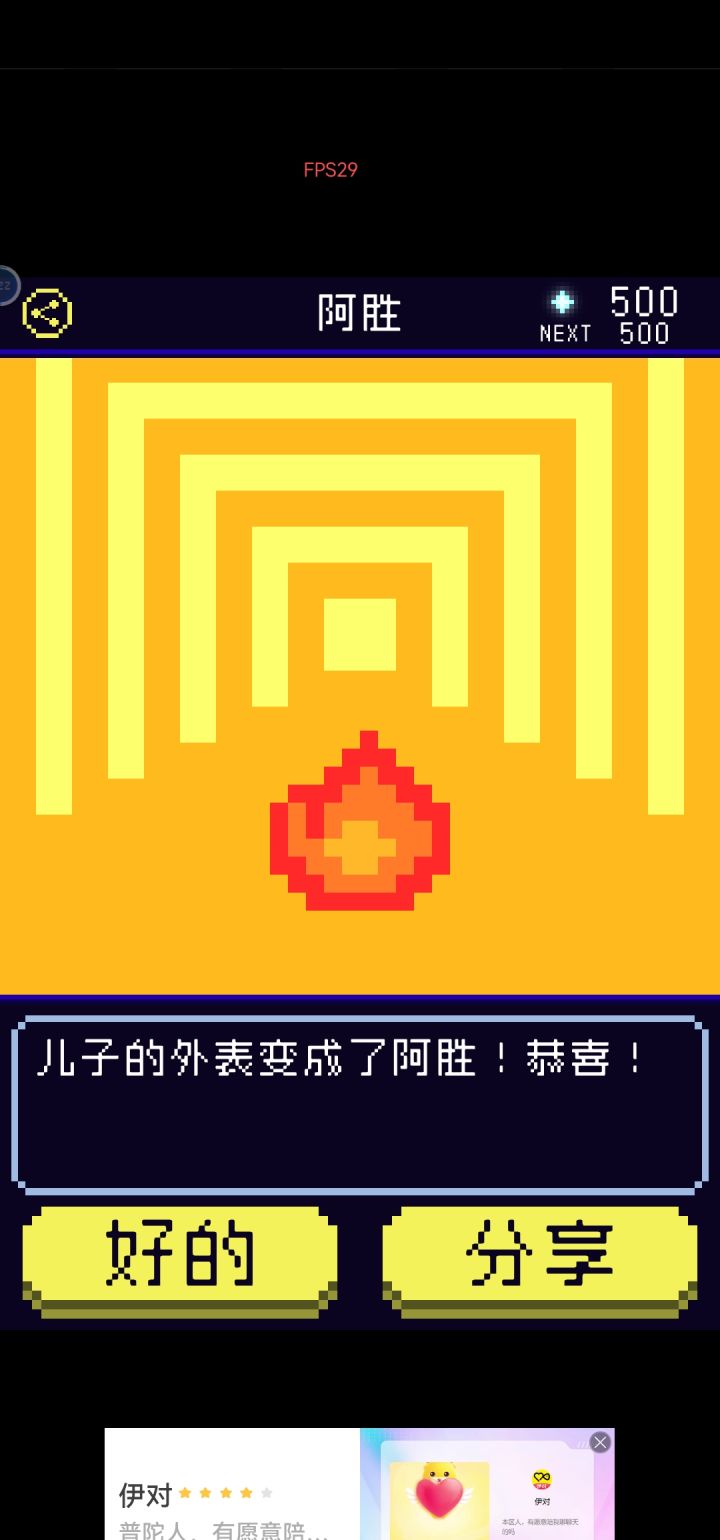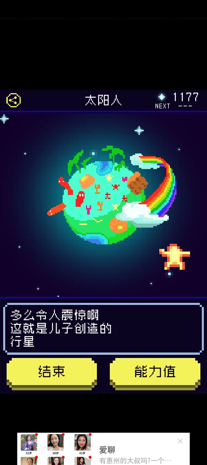 ②剧情:★★★★ 养成儿子的过程好治愈,不同的形态下的儿子在不同场景点击出来的互动也是不一样的。在神社场景的“想往里面丢香火钱明明自己就是神之子”真的好可爱,还有比如说阿胜儿子就是一直元气满满“对你露出满面笑容”之类的,吉米儿子就会讲“一个人好寂寞”这样的话,藤壶儿子是“顽固地封闭着自我”“想剥下儿子的壳可是太硬了剥不开”,不过一直不变的是儿子都会说“画中你和儿子手牵手”“好像希望你再摸摸他”之类的撒娇的话,老母亲瞬间代入感满满!故事的背景在乌鸦的给的提示里也慢慢清晰了(就是不知道为啥刷不出第十七条提示qwq)。虽然我第一次打出来的就是太阳人结局(标准结局的星球太美了)但是把其他线刷出来以后我发现主角都会说“多么令人震惊啊,这就是儿子所创造的星球”,这才是真正的老父亲吧...狠狠地感动了。还要夸一个就是刷其他不同结局的时候发现进化的数值要求都会降低👍👍