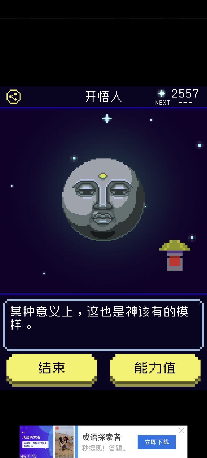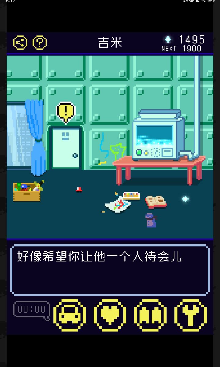 第一次结局是太阳人,很高兴。第二次我想要试一下故意把所有数值保持在最低,但是打着打着就感觉很愧疚,特别是最后一段时间收集亮晶晶的时候,不小心点到吉米,看见它这副模样感觉它好难过啊。良心隐隐作痛。#单机游戏