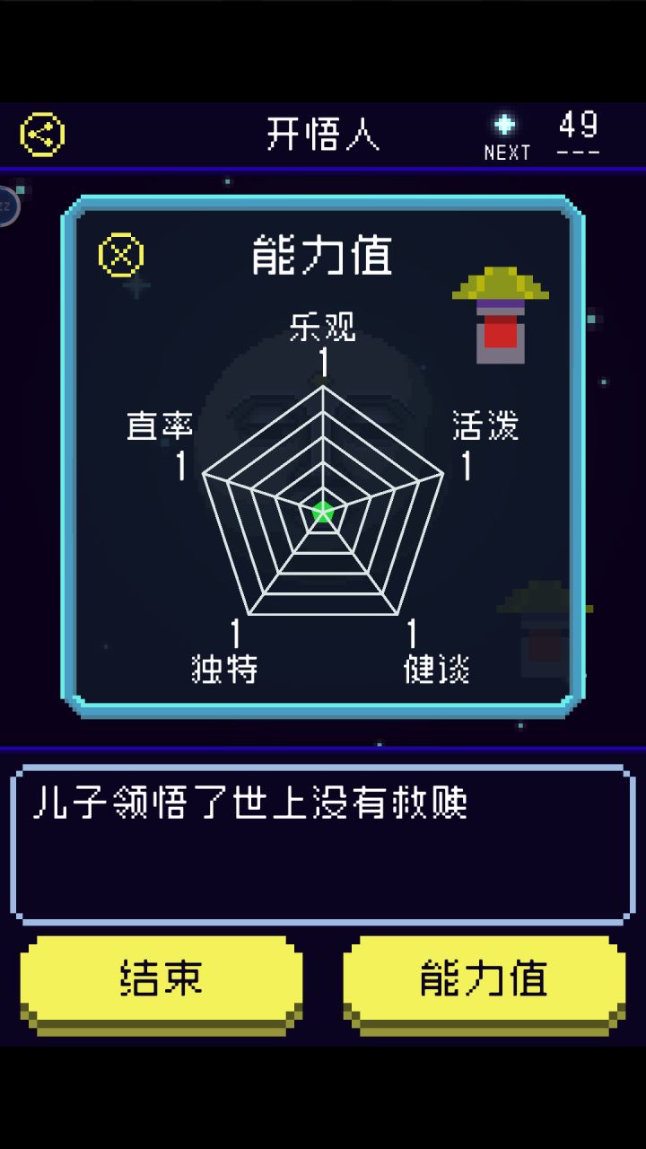 第一次结局是太阳人,很高兴。第二次我想要试一下故意把所有数值保持在最低,但是打着打着就感觉很愧疚,特别是最后一段时间收集亮晶晶的时候,不小心点到吉米,看见它这副模样感觉它好难过啊。良心隐隐作痛。#单机游戏