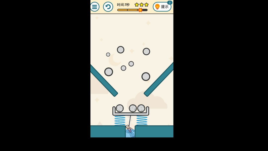 这一关需要3个铁球都从最中间的空隙落下就可以完成