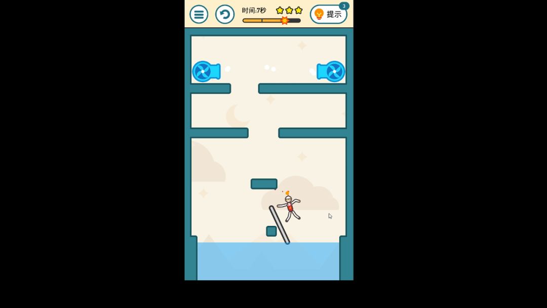 1.先打开右边鼓风机2.当铁球移动到左边鼓风机开关处在打开左边鼓风机3.球往右移动一小步后打开第一层缺口4.在打开第二层缺口