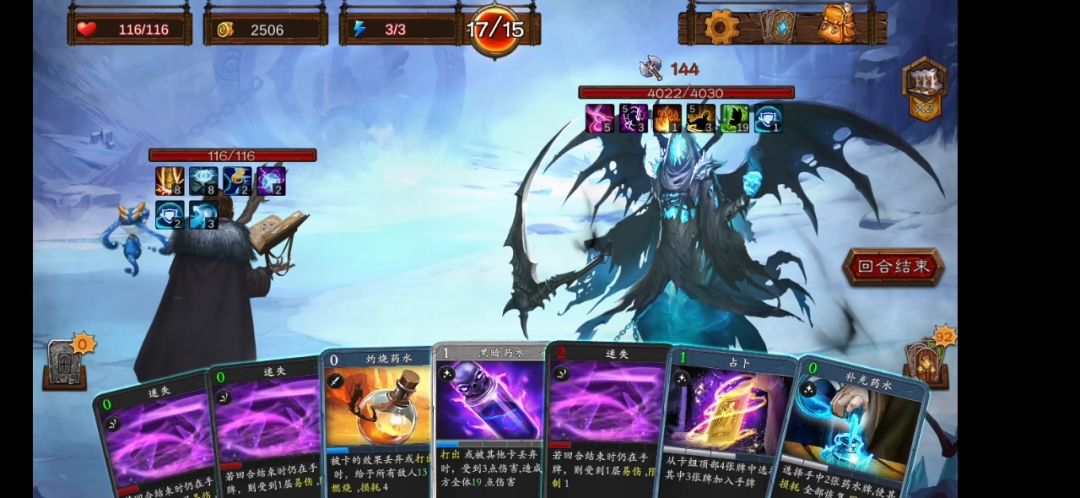 丢卡的快乐~干扰卡卡手了,一来忘记丢了,不然应该2轮能结束😇 前期一定要把基础攻击和防御卡升级起来,过渡用。 卡片优先累计药剂大师(换药,满级1张换3张随机) 所以什么药剂都可以,置换出神圣药剂后就可以按照 易伤~燃烧~随便其他的来扔了 总之就是,先无敌,或者护甲顶够,然后等易伤加燃烧叠起来就随意了。
