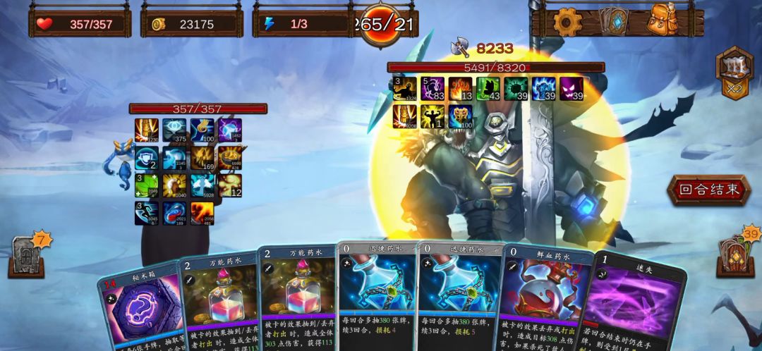 丢卡的快乐~干扰卡卡手了,一来忘记丢了,不然应该2轮能结束😇 前期一定要把基础攻击和防御卡升级起来,过渡用。 卡片优先累计药剂大师(换药,满级1张换3张随机) 所以什么药剂都可以,置换出神圣药剂后就可以按照 易伤~燃烧~随便其他的来扔了 总之就是,先无敌,或者护甲顶够,然后等易伤加燃烧叠起来就随意了。