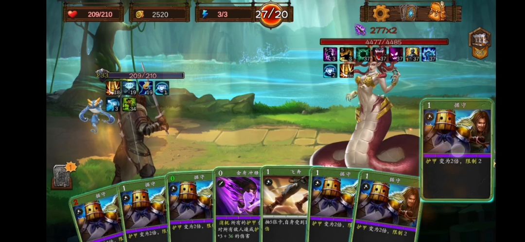 丢卡的快乐~干扰卡卡手了,一来忘记丢了,不然应该2轮能结束😇 前期一定要把基础攻击和防御卡升级起来,过渡用。 卡片优先累计药剂大师(换药,满级1张换3张随机) 所以什么药剂都可以,置换出神圣药剂后就可以按照 易伤~燃烧~随便其他的来扔了 总之就是,先无敌,或者护甲顶够,然后等易伤加燃烧叠起来就随意了。
