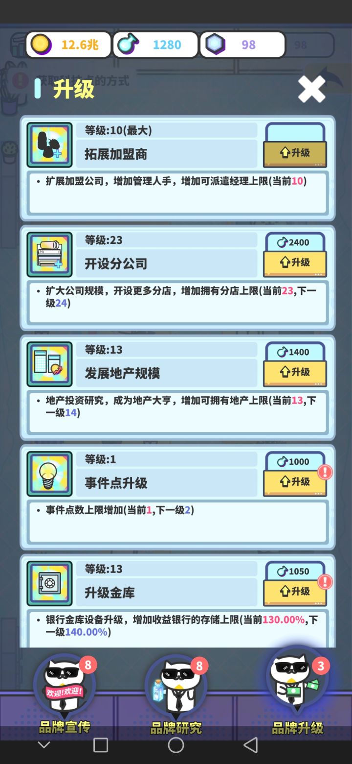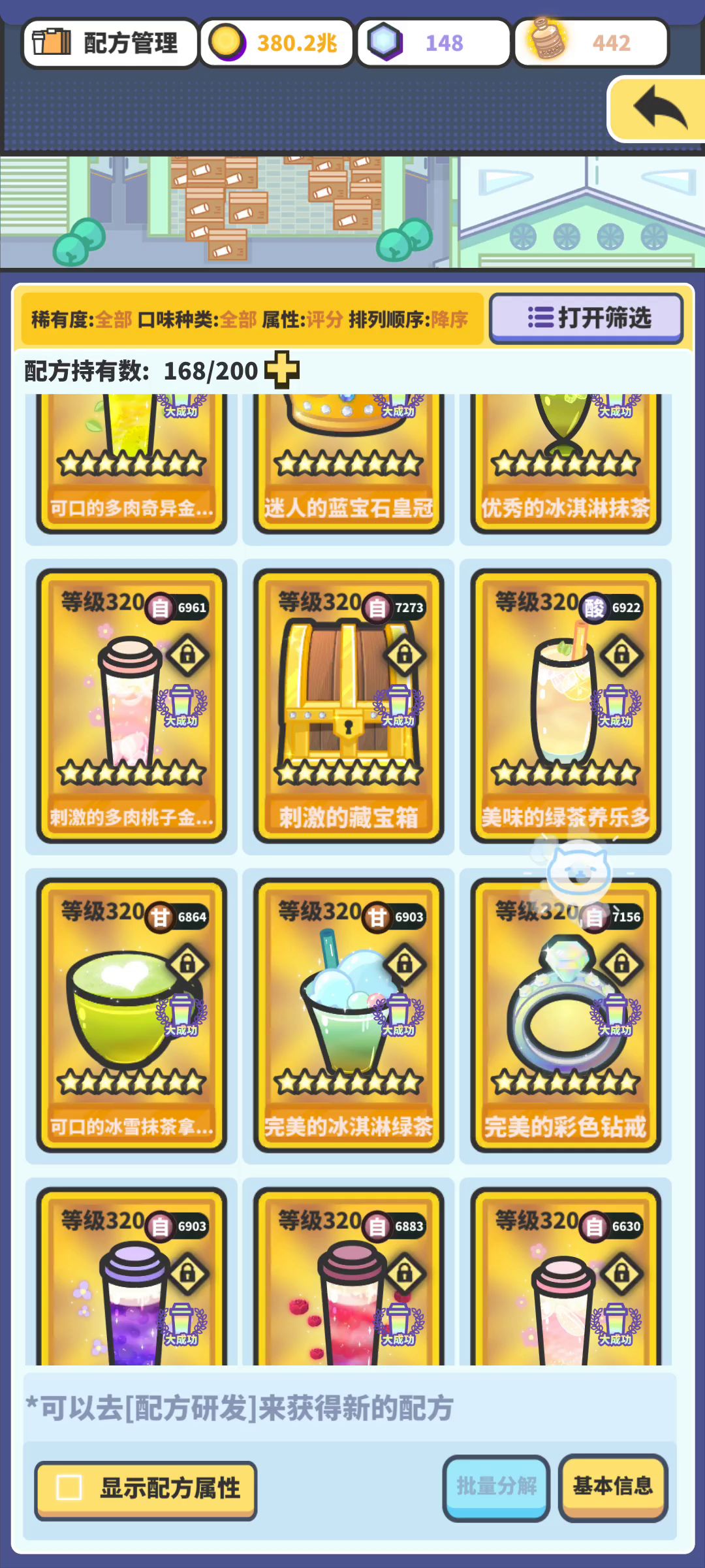 2.奶茶升级不建议升太高,踩着店铺要求的等级和属性就可以了,大概到最后每种口味有蓝色80级奶茶能过挑