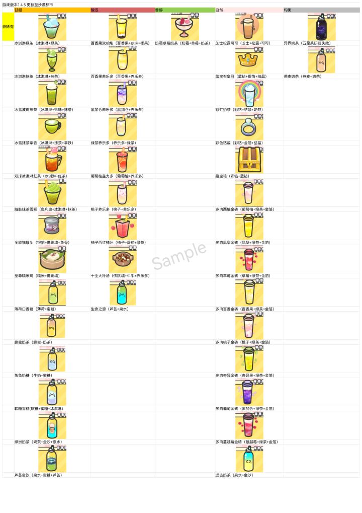 绿色材料41卡等级过委托的甘甜 焦糖+奶茶香醇 茉莉+奶茶自然 西米+奶茶均衡和酸涩都要有蓝色材料均衡 铃铛+鱼骨酸涩 柠檬+红茶