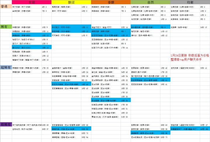 绿色材料41卡等级过委托的甘甜 焦糖+奶茶香醇 茉莉+奶茶自然 西米+奶茶均衡和酸涩都要有蓝色材料均衡 铃铛+鱼骨酸涩 柠檬+红茶