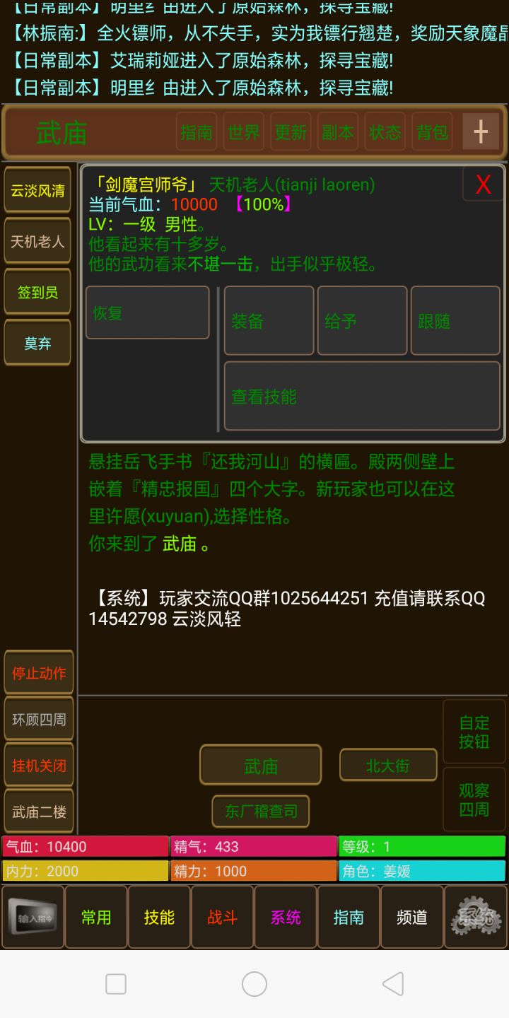 刀剑如梦游戏唯一群:1025644251。或许有人觉得纯文字游戏很枯燥无味,但如果你细细品味,会发现那些手机上冰冷的文字,都会变成栩栩如生的画面在你的脑海中浮现,在你的心中永存。欢迎大家来玩耍。游戏已经稳定运营四年半了,巫师一直在不断更新。从飞雪连天射白鹿,笑书神侠倚碧鸳。辟邪剑法、独孤九剑、凌波微步、九阳神功、乾坤大挪移、降龙十八掌等这些耳濡目染的武功,再到《风云》中雄霸、步惊云、聂风这些人