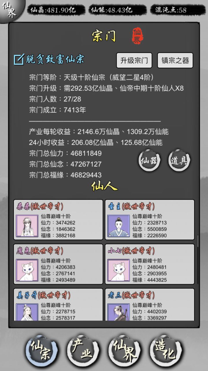 游戏官网:一款经商类单机修仙游戏!凡界仙界,两个世界,不同的修仙体验。凡界当商人,仙界当掌门。◆凡界中你将依靠策略买卖物品,辟谷丹?筑基丹?玄光玉甲?多种修仙商品,让你在飞速赚取灵石的同时,不断突破自己的境界,最终你能否成为修真界的传奇,飞升仙界?◆仙界中你将建立宗门,征服其他势力,开拓仙界产业,探索仙界地图,交战绝世凶兽,获得随机属性的各式仙器,成为最终的仙界之主!游戏特色1、游历凡界