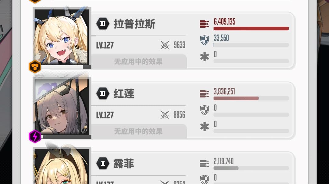 脑测及实战用下来和nga总体评价差不多吧。t1强度,仅次于红哈,与爱丽丝,德雷克,白雪等一帮t1并列。 清杂和多部位boss很强,打精英怪和打靶很弱。 讽刺的是另外一个c最好配红或者哈帮忙清精英。 伤害统计由于拉普拉斯不存在伤害溢出,会显得非常真实,这点与红哈是截然不同的。 副本:主线13-9,3w8打4w2,越10%-15%。 副本:掘墓拦截s,进3阶段以前。 主线13-15:越3k 13-18
