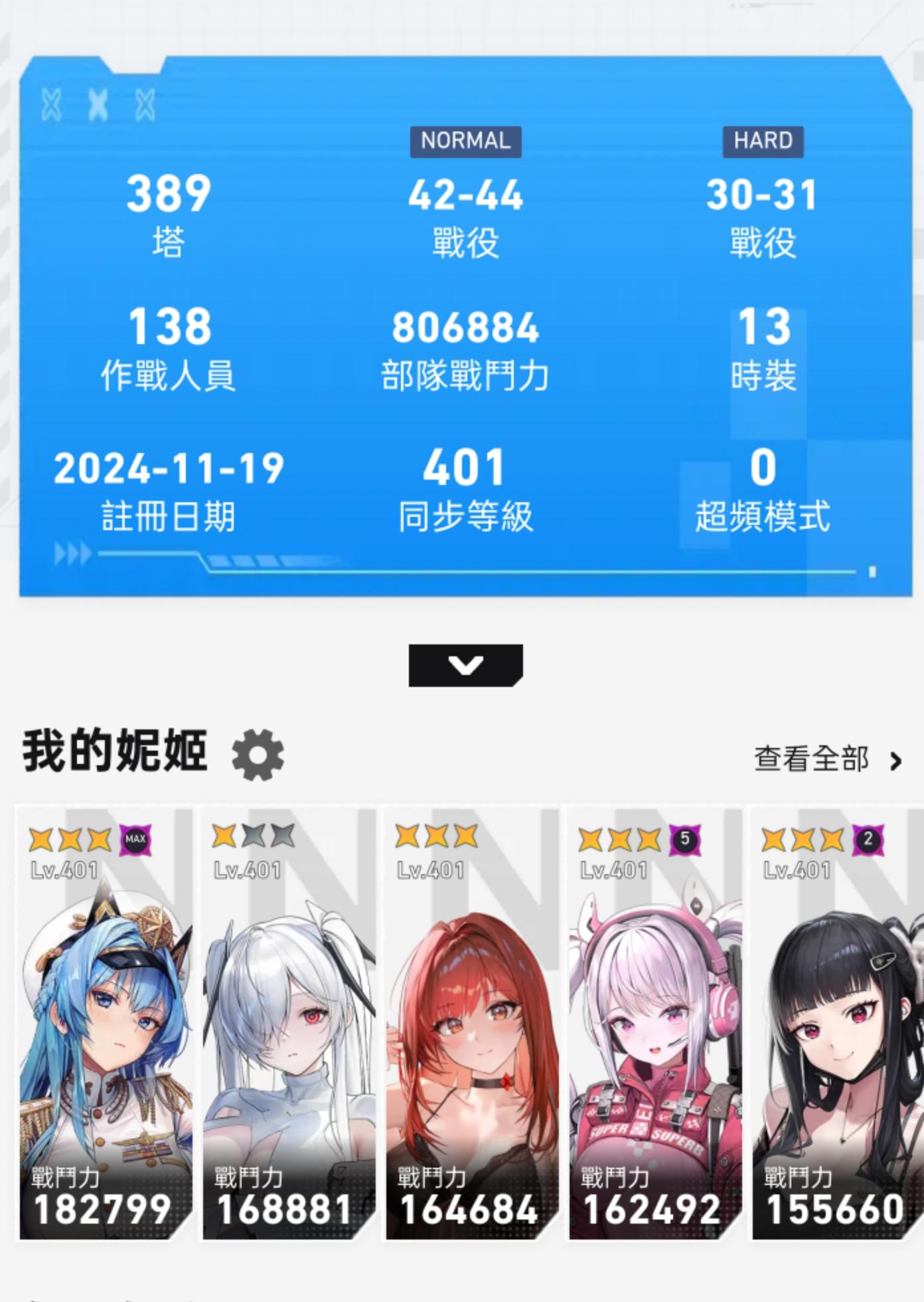 昨天同步器拉到401提了一波战力后浅推了两章困难,困难里的粪关真的是一卡卡几个礼拜,一过了之后下面就是一泻千里,直到遇到下一个粪关。浅浅总结一下,零氪玩了大概1年2个月,可能脸不算太黑,资源目前来说算是从从容容游刃有余。趁着元旦也是把第一个棱镜海伦抽出来了,该有的阵容基本都能组就是养不起,除了jjc的诺雅和米塔的水坎西。今天把图推完之后,基本上该卡的都卡了,企业塔也推不动了,hard也懒得凹了。