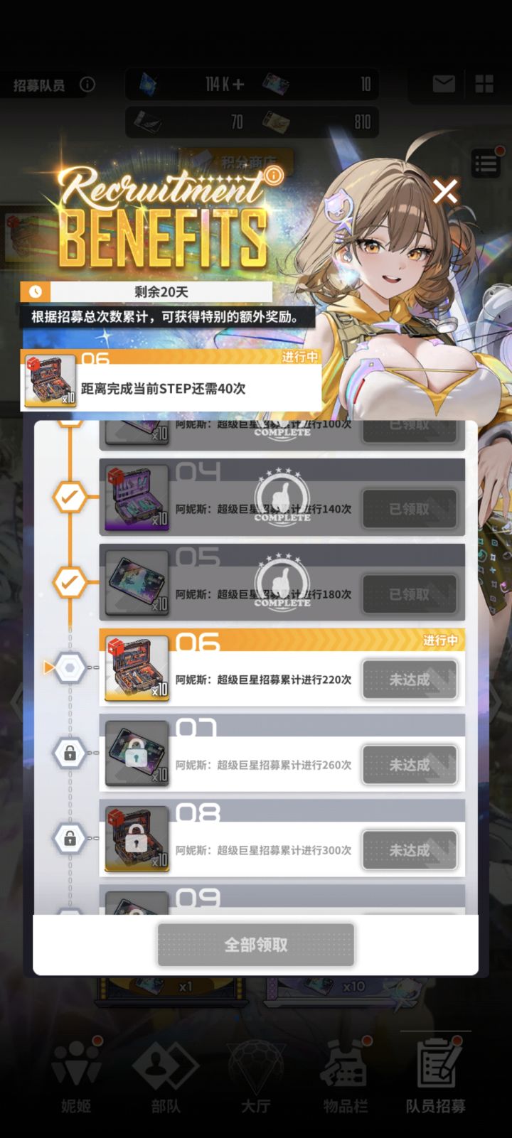依旧是喜欢的免费21抽,希望这一个月的21*2抽能出点仓管也行反正免费42抽是不可能出金的