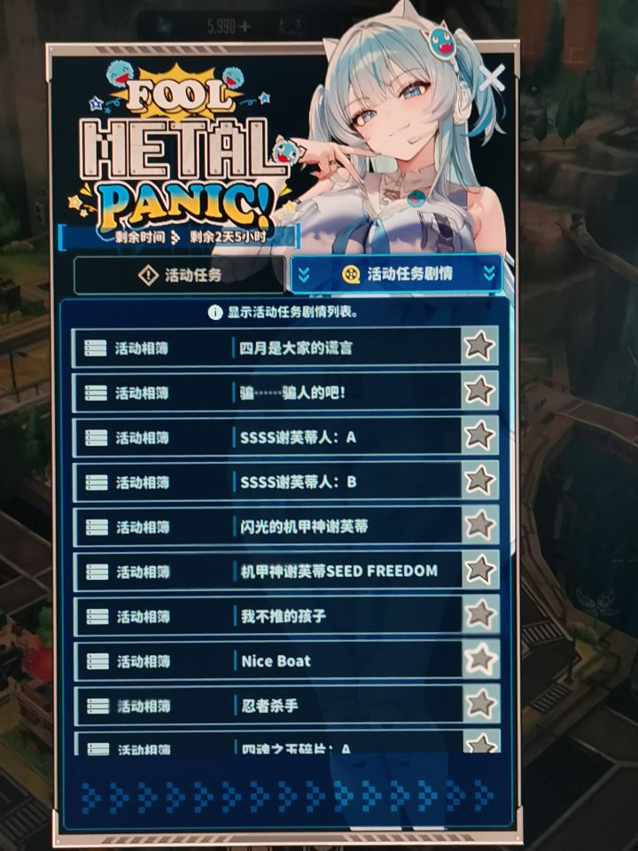 已经很晚了,草草看完愚人节活动全部内容,打开“剧情列表”,可以发现每一个小标题都致(恶)敬(搞)了一部经典动漫(轻小说),从《四月是你的谎言》到《全金属狂潮》,大家都认出来了吗?总的来说,NIKKE最近越来越回归“初心”,擦出新边界~(今天的活动里,具体内容就不说了,过不了审,什么生命种子,动一动要漏了…)感觉是被幕后大佬注入了什么神奇力量,突然就放飞自我了?不论是最近活动,还是皮肤,各个方面都
