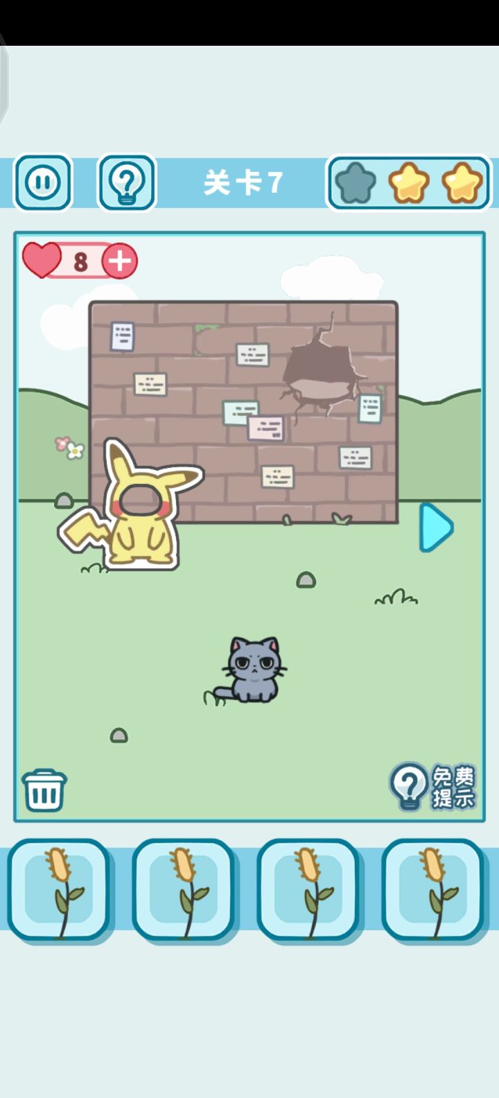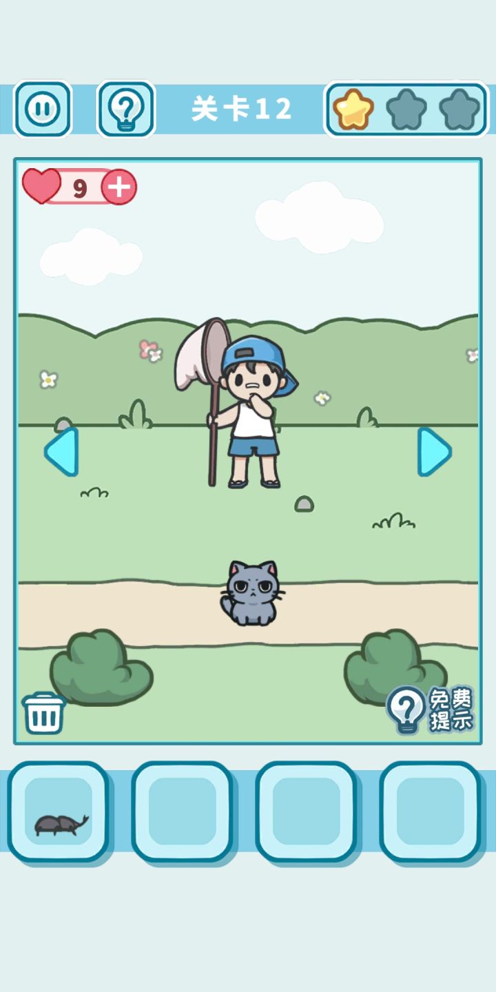 1-4我过了😂😂点回收垃圾桶获得一星点草点水壶,浇黄色的三朵花又获得一星然后回到获得水壶的地方,把草放身上,就可以躲了但是我只有两颗星,还有一颗星在哪里呀