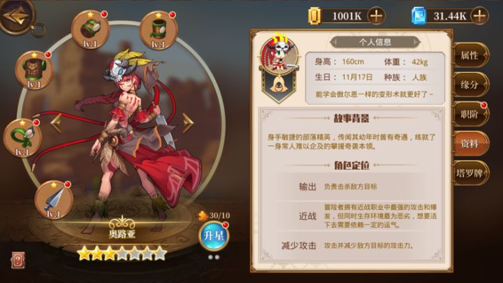 荣誉至上——哒坦部落战力盘点兰特大陆的东南方是由几大部落氏族联合起来而成立的哒坦部落。【哒坦部落简介】哒坦部落人民外表粗犷,却天性热爱自由、洒脱、他们崇尚萨满教,热衷使用大自然的力量。天性使然,他们对待其他国家也十分友好,同帝国、岚镜国都有来往。【英雄盘点】哒坦部落英雄能力体系多为野蛮系。1.近战最强攻击爆发型职业——冒险者成员:奥路亚【SSR】、傲尔恩【SR】定位: 近战、输出奥