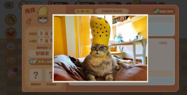 还有猫舍玩法~这个玩法我挺喜欢的,可以给小猫咪喂水和食物还有铲屎,最重要的是可以和小猫咪对话看日记!