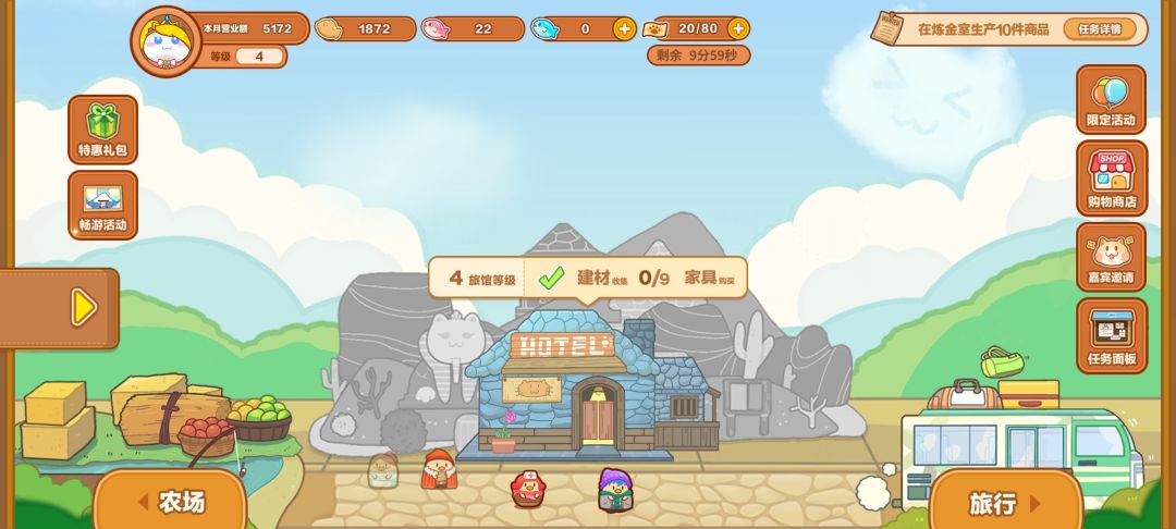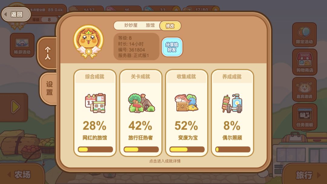 系统菜单: 1.图鉴,每个旅馆等级买满家具后都可以去领一次奖励,这个没提示,需要自己点进去拿 2.好友系统,每天可以送好友10次票,自己收5次。建议初期就用随机加好友,把好友加满,这样每天都能把票送满和收满,有空可以把爱心都点一下(虽然不知道自己的哪里看...) 3.车票差不多10分钟回1,可以自己注意时间集中推图。 4.每日任务记得做,刷新好像不太灵光(经常没广告),不过一般都是推图或者点气球。