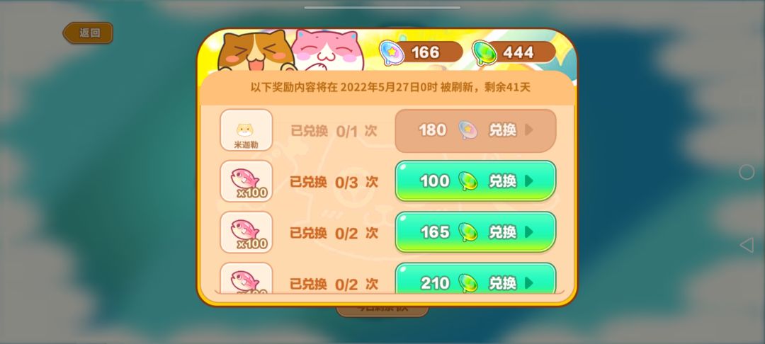 1.任务面板的周常小游戏,每天可以做十次 猫咪头顶的猜拳气泡和音乐气泡 猜拳赢了100小鱼干,平局50小鱼干,输了20小鱼干 音乐记忆,按照顺序重复点击,我的技巧是三个三个记,赢了会有100小鱼干 2.旅行关卡章节通过之后可以点击领取红绸鱼,精英关卡同样也有 3.左侧的图鉴里面角色与家具,每买完一套家具之后都可以领取50红绸鱼 4.这两个图标都可以增加10点爱心值,第一个偶尔会增加20点,第二个