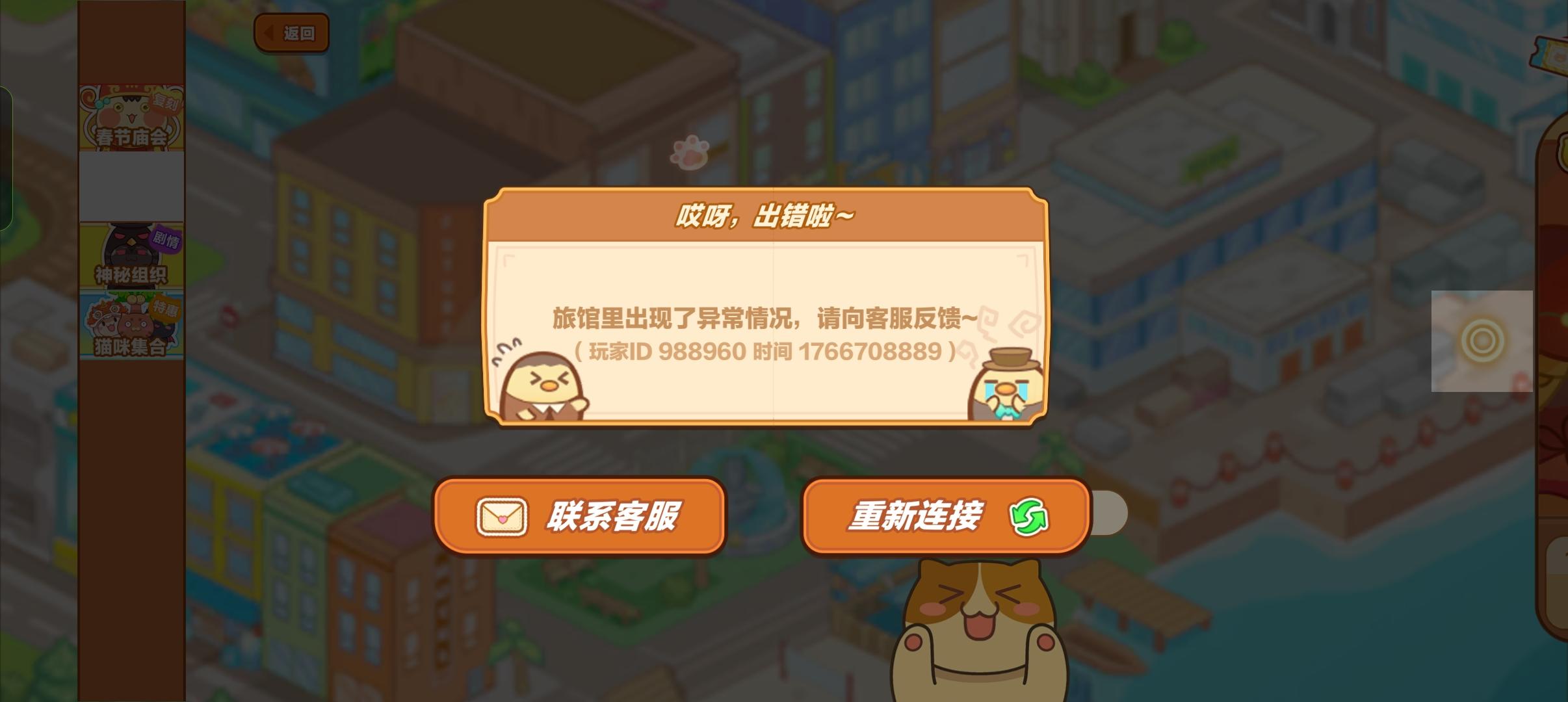 前几天实名都进不去今天更新好了,结果召唤猫咪功能又不能用,现在卡着又玩不了了