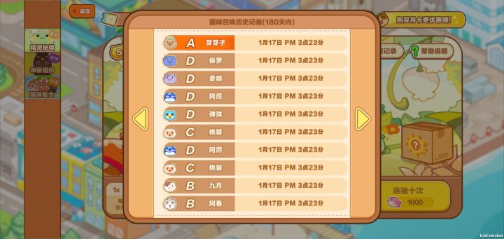 #游戏日常 #猫旅馆物语 这个池子30发中的,之前还抽了几十发,有一个池子快保底时保底歪了,不知道算不算欧