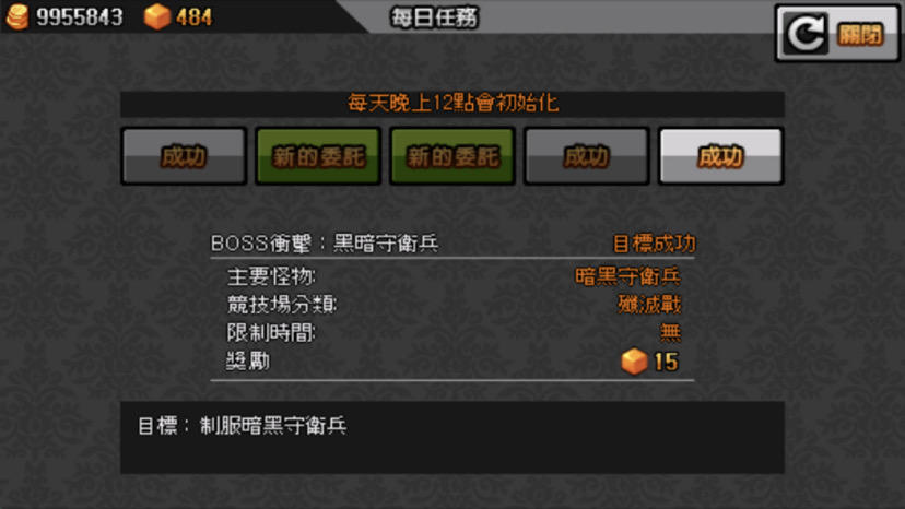 另外如果有人不想花錢買紅水和藍水的話可以去日常任務那送一送死,在日常任務那死了之後會直接滿血滿藍但要注意的是死亡之後并不會自動保存如果要用上面說的方法的話比較推薦時間攻擊和殲滅戰因為時間攻擊和殲滅戰一般是直接出所有的怪但towering都是慢慢出怪導致死的效率不夠快(本來想刷一刷經驗但刷到沒血之後偏偏日常都只剩下towering的任務了😭😭😭😭這種情況下每一次進towering的任務都只想著怪