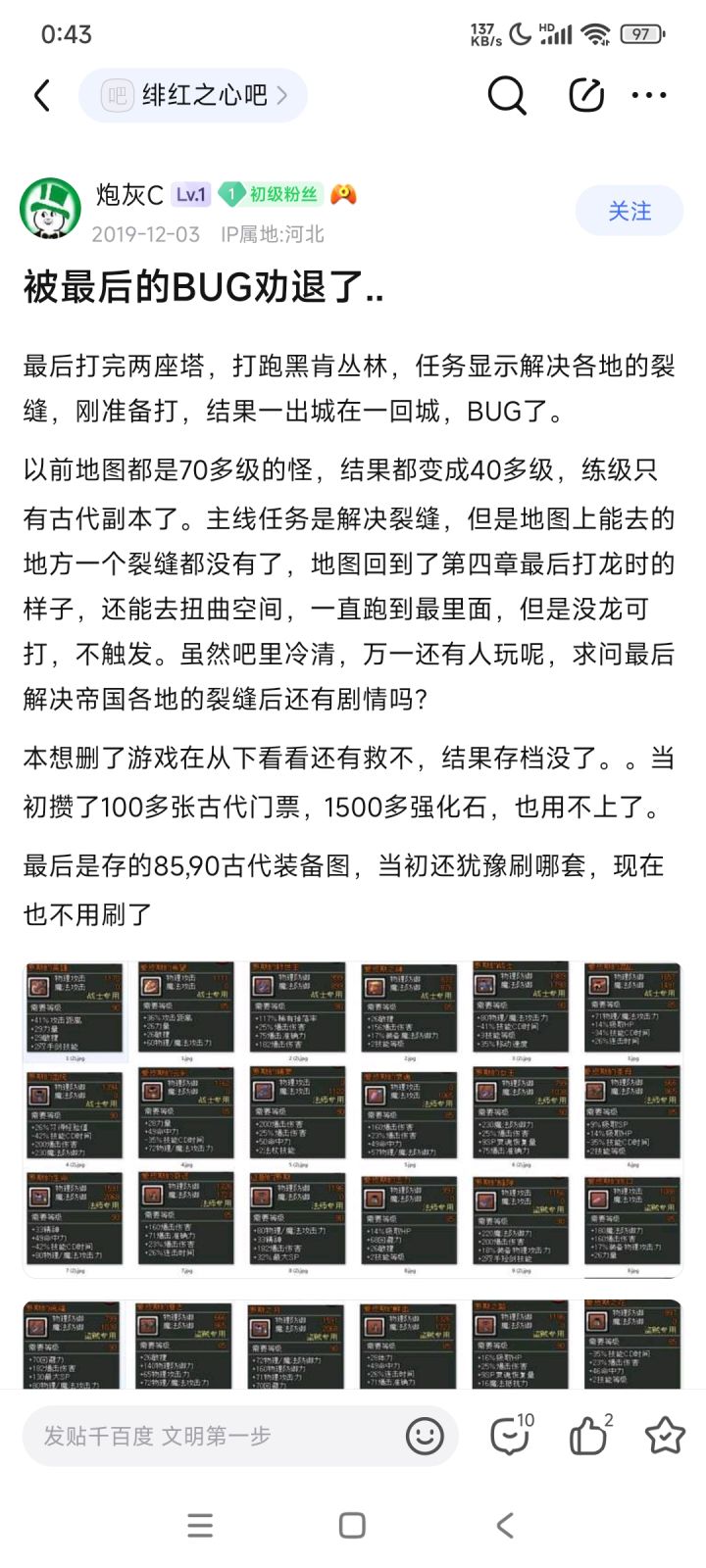 离谱了,95级刷了一百年出来两把初级大剑,又花了不知道几百年,花了积攒将近2*99的地下城入场券为了刷强化石,才完成+20*2(这应该是强化最便宜的了+19到+20一次只需要30左右强化石,不过成功概率低得离谱,还可能强化损坏?我是没遇到过)结果两把剑隐藏属性还不同!!!这也就是说,我那“六金”小号弄出来+20的紫色次元法杖得到的+250法术攻击也不是这一类装备的唯一隐藏属性,进一步想,每一件装备都有自己的不同隐藏属性,,,不敢想了,我快没肝了😂😂😂😂😂😂😂
