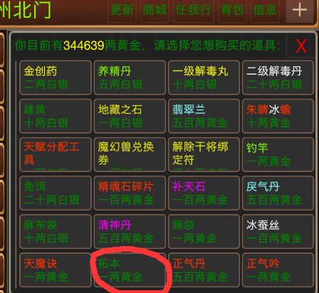 明教入门拜师就这个地方,这里再说一下,进房子或者山洞,左下角会多一个选项进去,或者直接输入代码:enter、out之类的,有些地方可能需要先look才会显示。7、一路拜师学艺学到张无忌这边,基本上能找师傅学的都差不多了,然后就需要自己解密去学乾坤大挪移跟九阳神功。乾坤大挪移 (qiankun-danuoyi) 要求:明教弟子,不能是太监,先天悟性 > 27,最大内力> 6000,有效内功 > 450 路径:同九阳神功,到明教密道,一直open north,找到阳顶天夫妇遗体,ketou, 就会掉出信和羊皮,信是阳顶天的遗信,羊皮当然就是乾坤大挪移心法了。 注: 可以读到380级,每50级一层,最高七层,每一层需要多1点先天悟性,所以修 满七层需要34点先天悟性。乾坤大挪移不能越过有效内功的三分之二,还受 parry限制,350级前还受最大内力限制,公式是 乾坤大挪移等级=(最大内力-4000)/20,这样你最大内力达到11000就可以不受 内力限制了。如果越过限制修炼会中乾坤毒,只有九阳神功可解。 九阳神功可解。 九阳神功 (jiuyang-shengong)要求:明教弟子,不能是太监,先天悟性30,先天根骨32,最大内力 > 3500,武学修养 > 100路径:于张无忌处,ask zhang 九阳秘籍,然后到明教的半山腰的密洞(这里开门需要内功要达到300,2000内力),进去后可以open 方向,来打开四面的门,往北走3步,往西走一步,再up,就可以找到成昆.杀之,取其头,然后出来从关外(rideto hujia;s;s;e)去冰火岛,上岛以后是个小迷宫,上下左右乱走也能进去,谢逊小石山的山洞里,见到后把成昆的人头给他,他会给你金毛(jin mao),然后再回张无忌处把金毛给他再ask zhang 九阳秘籍得到经在油中的提示。然后上昆仑啦(rideto kunlun;sw;se;eu;s;jump down)。这里最好用大米背你跳下去,让你的拿书id晕掉,然后另外拿个大米背着他jump down,醒了以后如果没有出路就zuan cave(如果发现有出路路,那就不是拿经的地点,就重新跳一次)进去里面找到一个受伤的猴子它会follow你,然后你带它去找到树枝,snap 树枝,用树枝给他包扎(指令bandage),然后它会给你一本经书,这个时候open bag就可以得到九阳真经啦。注: 可以读到380级,没有找张无忌问也可以拿到包,但是打不开。九阳神功受force,unarmed,sword或blade的限制