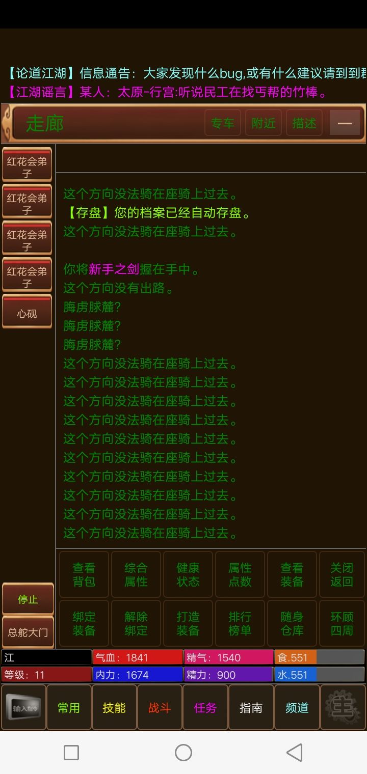 明教入门拜师就这个地方,这里再说一下,进房子或者山洞,左下角会多一个选项进去,或者直接输入代码:enter、out之类的,有些地方可能需要先look才会显示。7、一路拜师学艺学到张无忌这边,基本上能找师傅学的都差不多了,然后就需要自己解密去学乾坤大挪移跟九阳神功。乾坤大挪移 (qiankun-danuoyi) 要求:明教弟子,不能是太监,先天悟性 > 27,最大内力> 6000,有效内功 > 450 路径:同九阳神功,到明教密道,一直open north,找到阳顶天夫妇遗体,ketou, 就会掉出信和羊皮,信是阳顶天的遗信,羊皮当然就是乾坤大挪移心法了。 注: 可以读到380级,每50级一层,最高七层,每一层需要多1点先天悟性,所以修 满七层需要34点先天悟性。乾坤大挪移不能越过有效内功的三分之二,还受 parry限制,350级前还受最大内力限制,公式是 乾坤大挪移等级=(最大内力-4000)/20,这样你最大内力达到11000就可以不受 内力限制了。如果越过限制修炼会中乾坤毒,只有九阳神功可解。 九阳神功可解。 九阳神功 (jiuyang-shengong)要求:明教弟子,不能是太监,先天悟性30,先天根骨32,最大内力 > 3500,武学修养 > 100路径:于张无忌处,ask zhang 九阳秘籍,然后到明教的半山腰的密洞(这里开门需要内功要达到300,2000内力),进去后可以open 方向,来打开四面的门,往北走3步,往西走一步,再up,就可以找到成昆.杀之,取其头,然后出来从关外(rideto hujia;s;s;e)去冰火岛,上岛以后是个小迷宫,上下左右乱走也能进去,谢逊小石山的山洞里,见到后把成昆的人头给他,他会给你金毛(jin mao),然后再回张无忌处把金毛给他再ask zhang 九阳秘籍得到经在油中的提示。然后上昆仑啦(rideto kunlun;sw;se;eu;s;jump down)。这里最好用大米背你跳下去,让你的拿书id晕掉,然后另外拿个大米背着他jump down,醒了以后如果没有出路就zuan cave(如果发现有出路路,那就不是拿经的地点,就重新跳一次)进去里面找到一个受伤的猴子它会follow你,然后你带它去找到树枝,snap 树枝,用树枝给他包扎(指令bandage),然后它会给你一本经书,这个时候open bag就可以得到九阳真经啦。注: 可以读到380级,没有找张无忌问也可以拿到包,但是打不开。九阳神功受force,unarmed,sword或blade的限制
