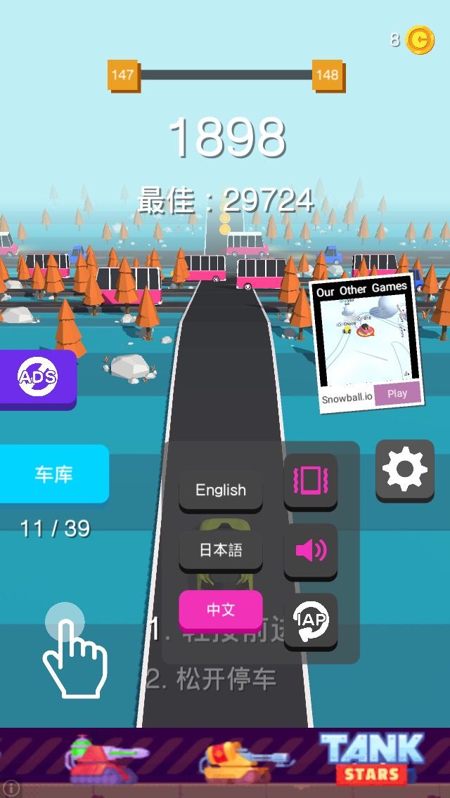 Traffic Run这款游戏Geisha Japen开发的一款修闲的小游戏。我觉得它主要吸引玩家的玩的地方是“刺激”。游戏的操作很简单。“触摸屏幕”,汽车行走。“放开屏幕”,汽车停下。不同于左右操控汽车,这种操作更加的方便简单。 为什么说他“刺激”呢?在游戏里,道路仿造了国外交通设计,整个主题都以车为主。玩家操作主车,躲避其他车,到达终点成功通关。它的”刺激”点在于”躲避”。路上的车有很多种
