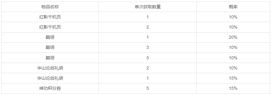 活动一、周年盛会限定盛会活动 【活动时间】9月20维护后~10月10日 【活动区服】全服 ①【周年盛会登录】 活动期间登录游戏即可免费领取元宝、千机券礼盒、经书、千机红页、金猪熔炼石等超豪华大礼; ②【周年盛会任务】 完成周年盛会限时任务即可获得周年抽奖券、元宝、经书、红影千机页、阵法残卷自选等超稀有道具; ③【周年盛会抽奖】 消耗周年抽奖券即有机会抽取金武神功精选、豪侠外功精选,游侠外功精选,突
