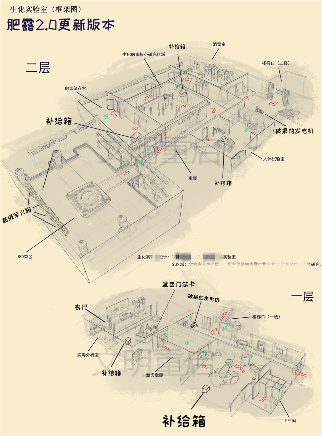 一定注意:此贴为老版攻略,我暂时不会删帖,因为我会在最近进行一次更新,以下内容不适应本次测试版本。 啊,今天又是元气满满的一天。 塞完领地柜维护物资之后,拉上小书包,准备前往生化实验室嘻嘻。 白嫖准备: 1.一张绿色门禁卡 2.100电阻 选择部分: 3.一张紫色门禁卡 4.队友1个以上 5.枪械1把 6.200发子弹 生化实验室结构图 (原图来自游戏官方) 熟记结构图以后我们就可以白嫖了哈哈 1