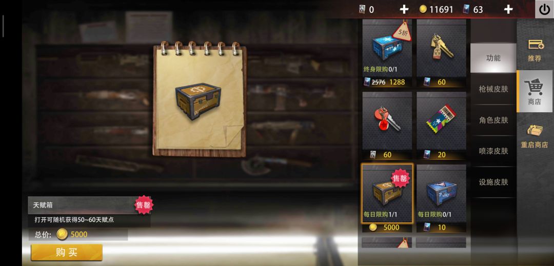 商城每天固定5000买一次的天赋箱是天赋点基础来源,金币去标准服刷,标准服有徽章结算是2万金币,没徽章结算是1万金币,可以选择标准服还有3天结算的时候去刷满15级。每个月金币上线是48000。 有一定经济基础的可以搞一下欧皇重启6元一次,抽满5次,也就是30元就有欧气暴击,第一次欧气暴击是紫色皮肤,后面每天充6元就有一次欧气暴击,后面的欧气暴击大概率是1088金币,当你抽到蓝色皮肤时就可以停手了