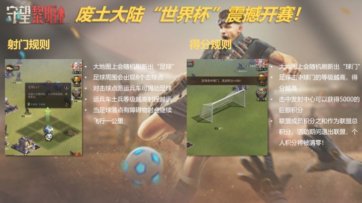四年之约已到,在世界观众的瞩目下,这个星球上最热血的30个男团正在“卡塔尔世界杯”挥洒着自己的汗水与青春,与此同时,废土大陆先遣战区的“废土杯”也在一声哨响下正式拉开了序幕!“废土杯”作为全体指挥官的体育盛事,不仅能够让大家在游戏中真实的体验一把“一射入网”,还包含了非常丰厚的个人奖励与联盟奖励,请收下卡希尔为大家准备的攻略! 在评论区说一说你认为有机会闯入16强的队伍,我们将抽出1位幸运指挥官送出【惊喜装扮礼盒(星球毁灭者)】x5,礼盒有机会开出基地装扮:星球毁灭者(永久)!