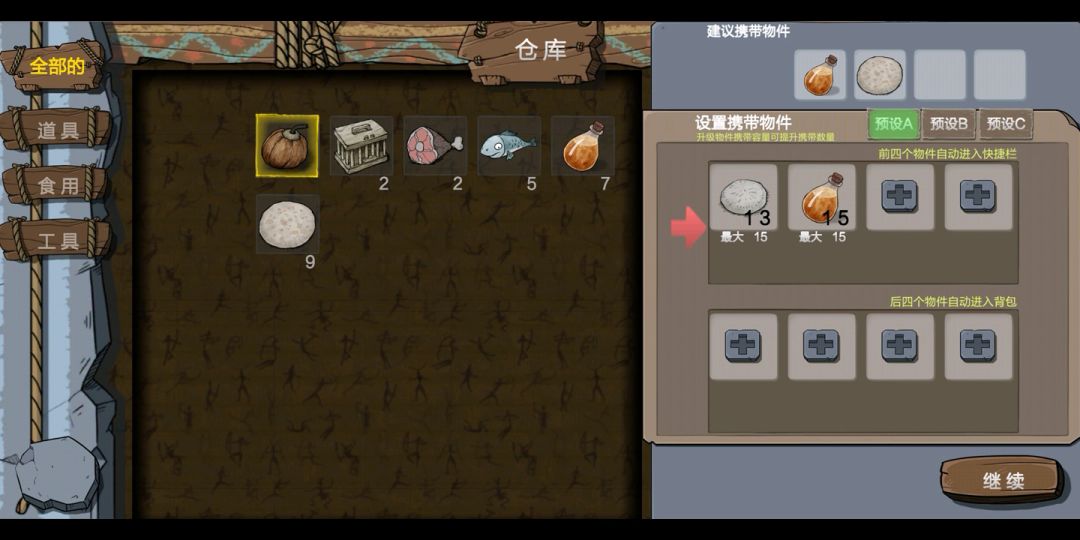 第一次进关卡可拿道具,退出关卡第二次进拿不了道具,进家园再出来才能拿