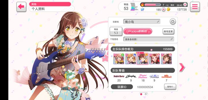 打了好多次协力,总遇到一些普通难度Fc或hard难度差不多失误的玩家,分比我打ex高好多。明明全觉醒,而且带了是五个分卡,技能5级。这个没仔细选,队里poppin人多,我就都选的poppin。升到3/4级基本没钱没材料。。至于乐队等级poppin14,ro20。测试服协力就练歌,但是明明不太手残,怎么搞都有普通难度全连的吊打我eee。这分怎么回事,一米哇咔奶!!(邦邦只玩了6天测服,(/