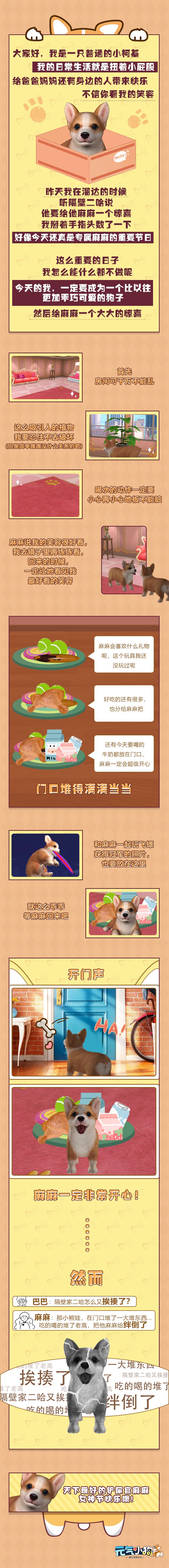 阿汪!各位铲屎官好呀~我是来自《元气小狗》的电臀柯基,你们叫我元气汪就好!6月4日《元气小狗》超萌开测,我就能与大家见面啦~不知道是哪位小仙女小哥哥能把我领回家呐!真的是很期待呢~在正式见面之前,本汪给各位铲屎官剧透一下《元气小狗》有哪些好玩的地方吧!【多种萌犬,任您选择】主人你看,这是我们的全家福,我有很多兄弟姐妹!不论你是喜欢拆迁队扛把子哈士奇,还是喜欢忠厚老实的柴犬,或者是柯基萌萌的大屁