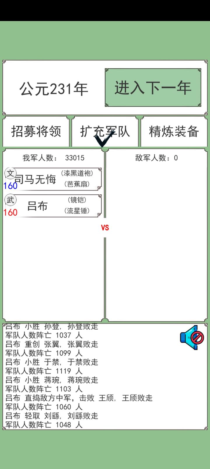 开局先选先选满智或满武,在将领足够多的情况下就装备精炼,兵少了补兵,其实很容易活过50年的