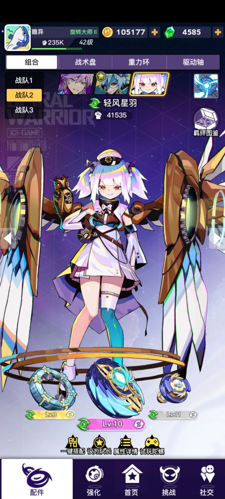 今日规则:中央会有个固定不动的雷怒,全程无敌,不会冲撞,偶尔放大电电双方陀螺。貌似不会因为小碰撞造成伤害。通关阵容:1.饥食+武神+惑:惑拉高自身重量,能频繁和中央固定的雷怒发生小碰撞,触发特性不停回血充能放大。武神主要是提供一个攻击加成。2.琴弦+梦幻+颂:因为中央雷怒固定,所以只要奥义的音符生成在中央周围就能共鸣。原装配置,朴实无华。3.天平+天秤+智:原装配置。奥义能稳定给到中央雷