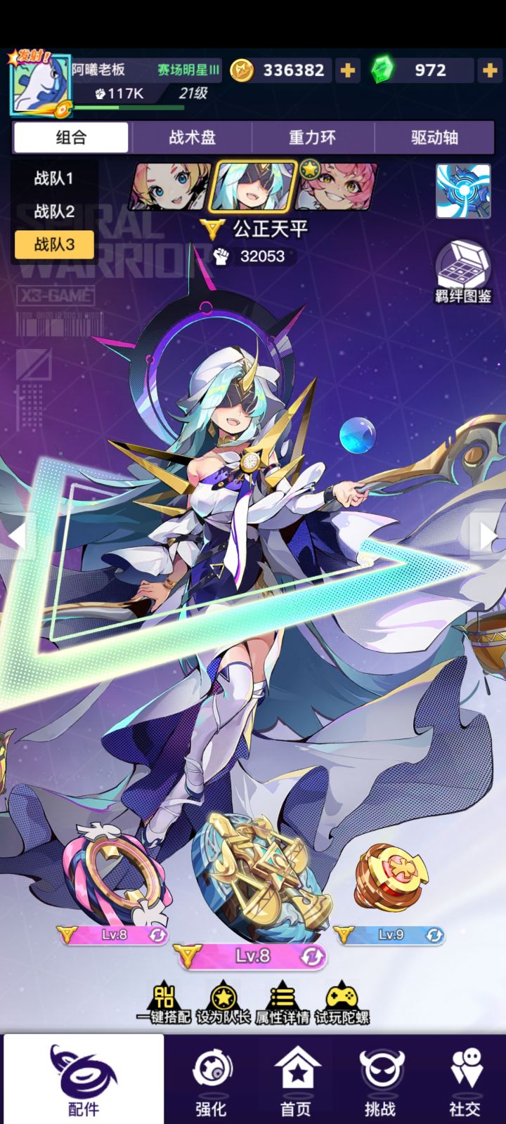 今日规则:中央会有个固定不动的雷怒,全程无敌,不会冲撞,偶尔放大电电双方陀螺。貌似不会因为小碰撞造成伤害。通关阵容:1.饥食+武神+惑:惑拉高自身重量,能频繁和中央固定的雷怒发生小碰撞,触发特性不停回血充能放大。武神主要是提供一个攻击加成。2.琴弦+梦幻+颂:因为中央雷怒固定,所以只要奥义的音符生成在中央周围就能共鸣。原装配置,朴实无华。3.天平+天秤+智:原装配置。奥义能稳定给到中央雷
