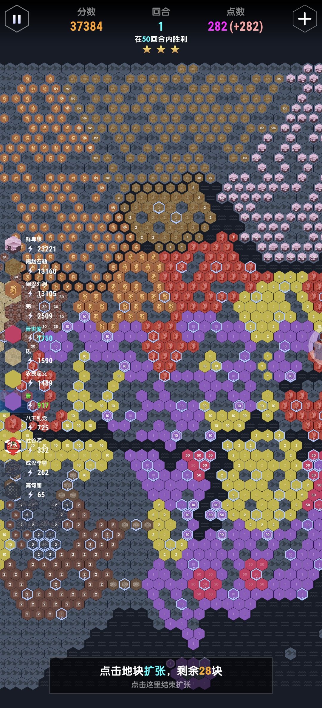 游戏也玩了一段时间了,相信大家也基本都打到专家了(笑) 而进入专家难度以后,游戏随机性的影响也大大提升了(毕竟失去了全图视野,无法掌控发展方向了) 此时,一个好的开局位置就显得尤其重要,开局随到地图中央,被三到四个电脑暴打的情况,相信玩的多一点的基本都遇到过。这时候你能做的只有全力防守了,寄希望于电脑被身后的敌人拖住,伺机偷一两个地块。 当然,最好的选择还是重开吧|•'-'•)و✧(希望你下一局不