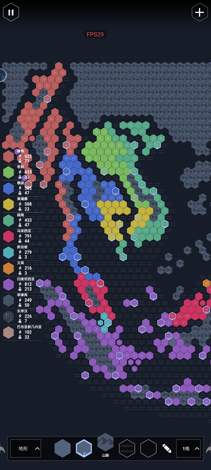 这个底图做了很久了,又改了一下势力,把巴布亚新几内亚加了进去吸引仇恨,每个势力都有独特的打法,多河流山脉,据点比较密集,后期靠平推,有难度但不多