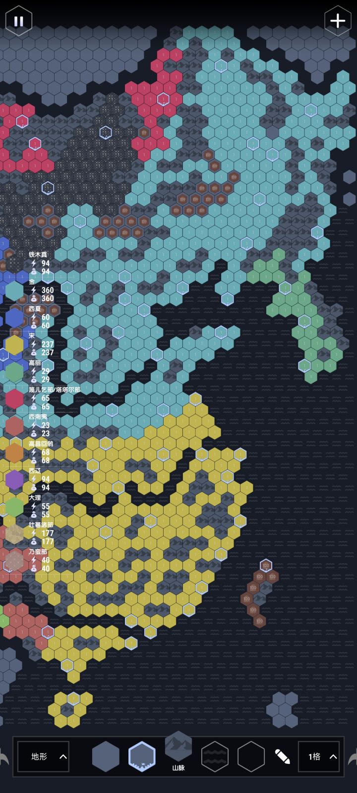 打算搞一个架空剧情图,而且不只是一个图,还是一个系列,以后会不定时的更新从登岸0年到一百年的地图。老规矩先来看图吧:底图:势力图:开局兵力:地形图:既然是剧情图肯定是有剧情的,这边是设定:后续剧情与地图之后还会更新地图代码发到评论区,代码被屏蔽的词发到回复里(注意区分大小写)本图为群内文档270号