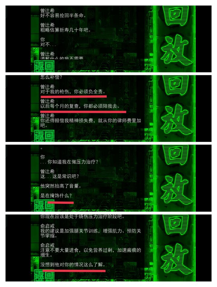 (其实结局那块儿还有一次,就是我妥协了嘛,我跟他们合作,把那些内鬼都追为英雄吗?然后我去找他,他就一开始不太高兴,对我表现得很冷漠,感觉意思是我为了自己升职,为了一个皆大欢喜的结局,没有把真相公布出来)