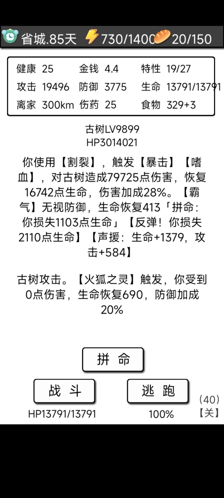 流浪日记2随手记《我一定要打爆刀疤男还有南城四蠢!》《剧情杀,不存在的,只要有血条,哪怕是神也杀给你看》日记剧情第三天晓月系统开启,建议点六次祈祷刷到一级,第一波盐老鼠来袭,第四天山谷大蛇出现,大蛇掉落精力上限+10食物6粘液3神秘晶石1,第六天木匠系统开启,(建议配合木匠bug至少刷满包,肝帝可刷全极品)备战纹身男,(要求三级攻四级血两三级皮五个药)能不能打过还得看脸,如果一直被打出流血那就凉