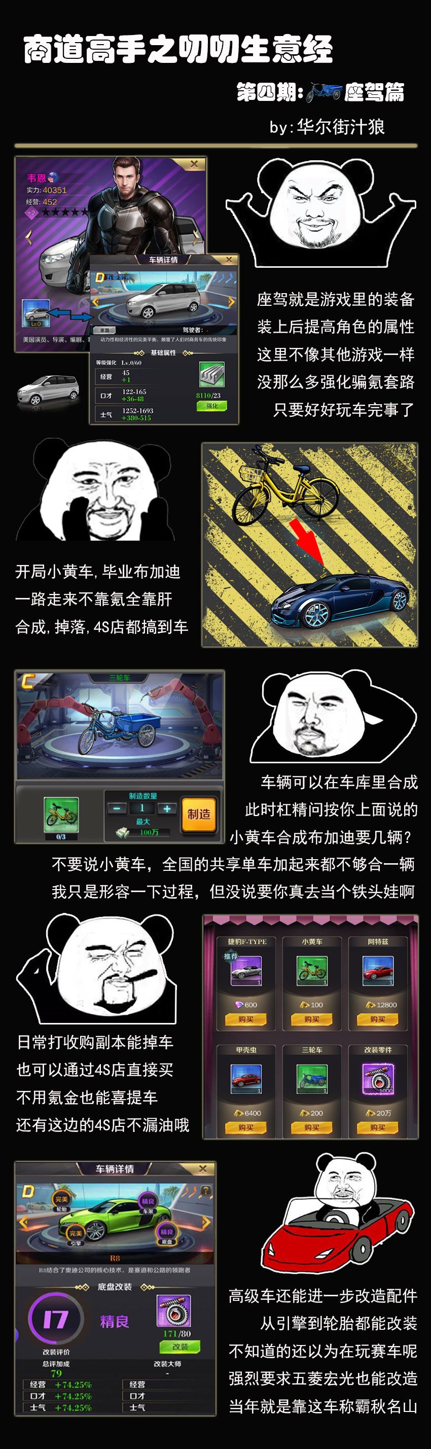 大家好,第四期要介绍的是游戏里的座驾,座驾是游戏里唯一的角色装备,从最基础的小黄车到顶级跑车都有。狼叔出品,不求精品,只求唠到底!