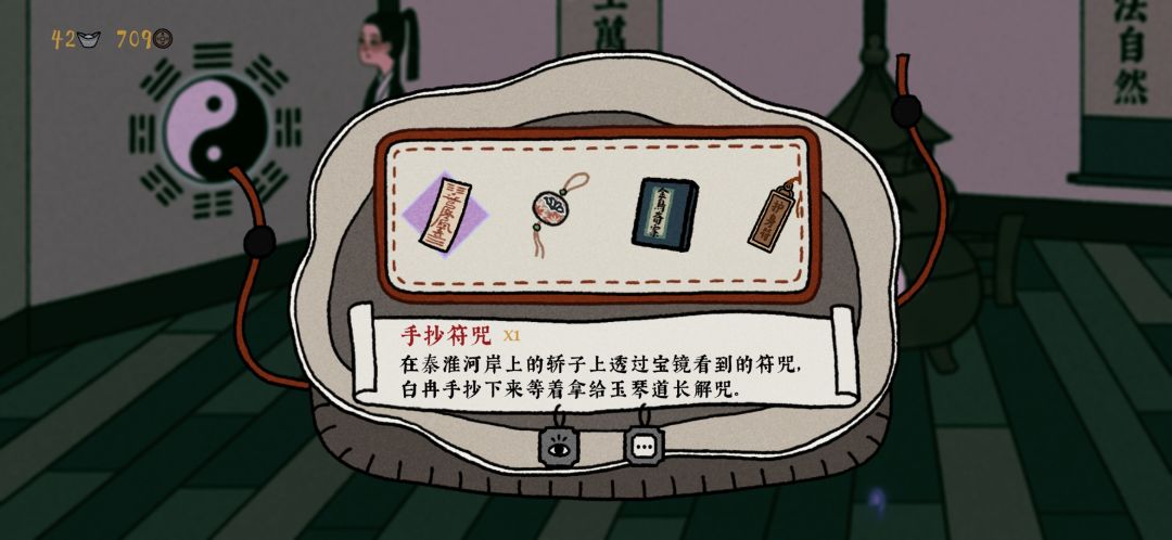 通关啦!给伙伴们一些重要的不剧透小Tips: -害怕银钱不够用的话可以去当铺倒买倒卖赚钱,目前看来是酒最赚钱,但一般情况下钱不会用完,不必过于担心。 -每天移动次数只有三次,第三次对应“晚上”,之后必须回客栈休息,记得把握次数和顺序。 -多用宝镜观察场景,做宝镜笔录 -人物互动的第二个选项可以用笔录来进行“对质”,很重要所以可以多试试 -如果客栈有咕咕(鸽子)出现说明信盒中有来信,记得及时查看 -