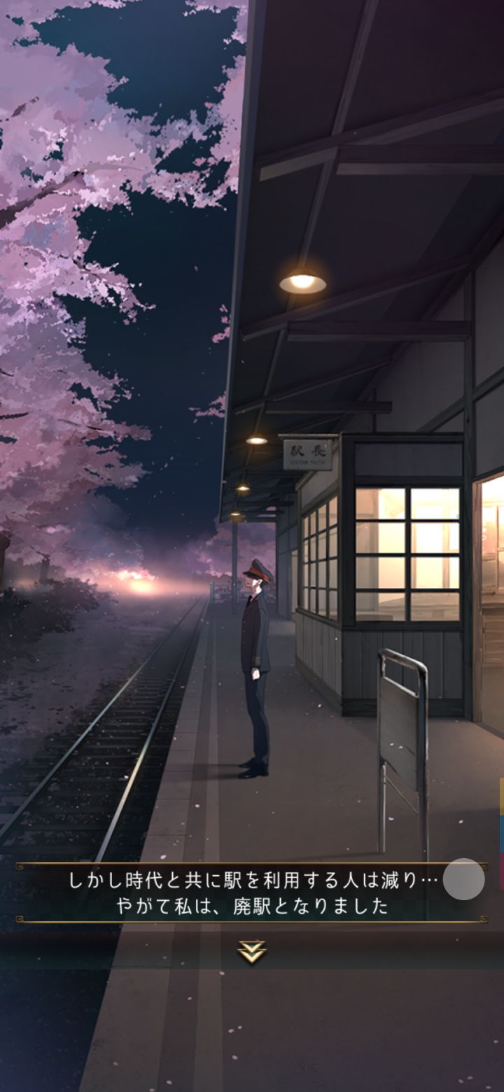最后,失物招领2号站准备下班,这时站长站在站台上看着飘舞的sakura,对你缓缓讲述了他自己——这个しゅうてん——失物回收站本身。