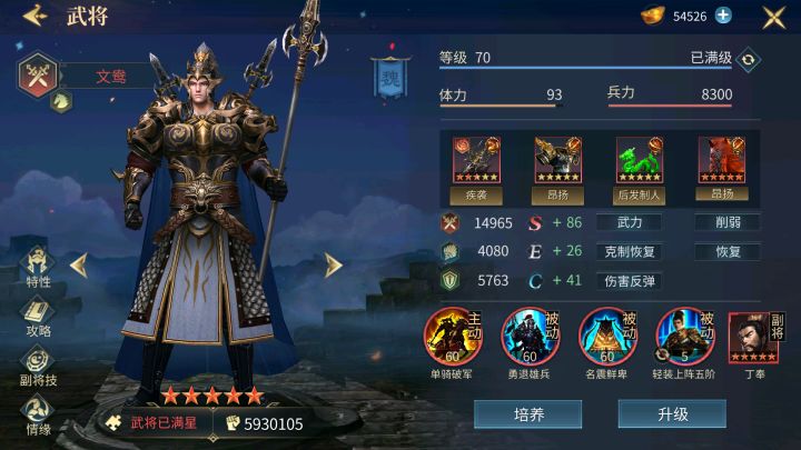前言:一个多月前发布了一篇万元将,然后经过这一个月的时间,一直觉得内容有些过于粗糙了,思来想去决定重新认真得发布一下,希望能给到诸君一些略微的帮助。提前祝大家新年快乐!本次先来讲万元将中的文鸯文鸯 : 少年冲阵,单骑破军以上是文鸯的技能,星级特性以及专属技能。不能看出,文鸯在打架方面绝对是一员猛将。首先,二技能跟魂赵云一样特殊的高武力值免疫兵种伤害机制配上十星特性,降低对方10%武力值,只要