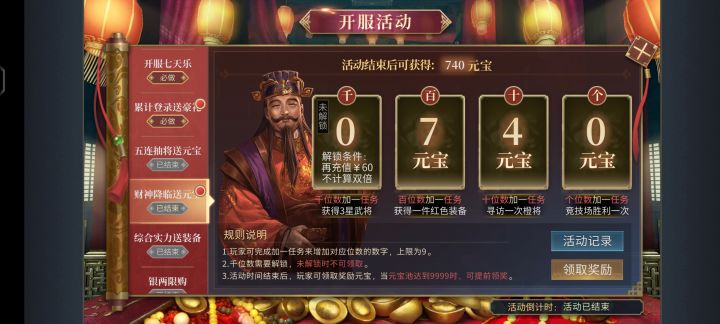 前三张图建议第一天直接60块(大佬直接648解决就好)60块完成任务可以直接领取9999元宝,本游戏最划算的活动没有之一,要记住是没有之一最划算,,